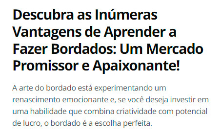 Aproveite essa chance única de construir conexões valiosas enquanto aprofunda seu conhecimento sobre Bordados.